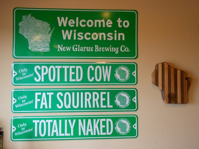 We had the great pleasure of inteviewing New Glarus Brewing Company Co-Founder and proud Wisconsinite Deb Carey while visiting them in New Glarus. Not only were we taken aback by how similar we are as fellow cheeseheads, but were also blown away by what a magnificent brewery they have put together. A state of the art modern fascility (see tomorrow’s posting) blended with true Wisconsin charm made us want to stay just to soak up the environemnt. Of course the beer is damn good too. One of the more interesting facts is that New Glarus beer is only sold in Wisconsin, a fact Deb proudly pointed out in our interview, after which we discovered it is also a part of their marketing (see photos below). One should note though that if one must take a trip to Wisconsin in order to have a pint of Spotted Cow it will be well worth the trip.