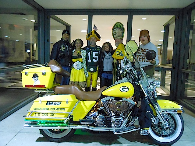 Those at hand with us included The Owner, Saint Vince, Acme Packer, and Cheese Louise. And of course lets not forget Harley Mike, a new Super Fan inductee along with his wife who brought out their customized Harley Davidson bike (yes, Harley is a Milwuakee based company, thus a cheesehead through and through in its own right) which everyone found to be one of the most fascinating parts of the pre-show party.
