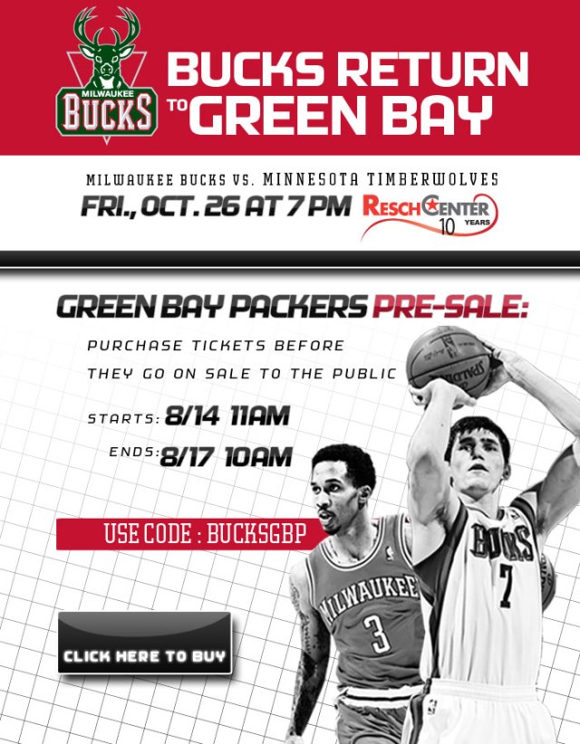 Filed under Milwaukee, Milwaukee Bucks, Wisconsin Events, Wisconsin Sports Teams · Tagged with basketball, Green Bay, Milwaukee Bucks, Minnesota, NBA, Resch Center, Special Events