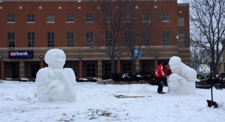 Packers-Themed Snow Sculptures Created in Downtown Menasha