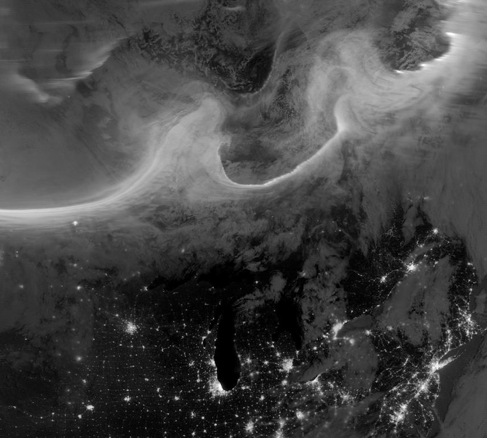And another killer shot from NASA and U.W. Madison show Wisconsin during a major snow weather pattern (January 2013)…